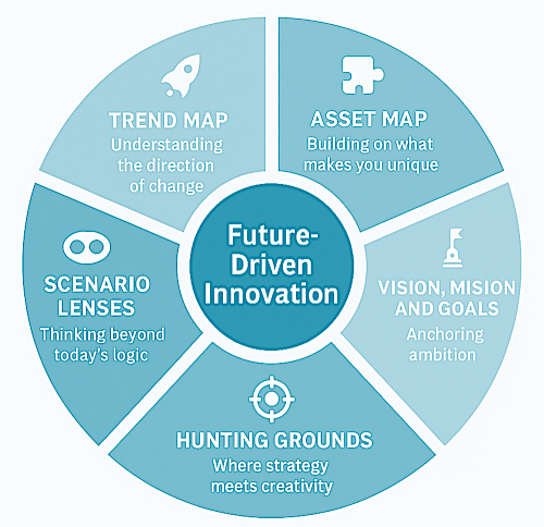 Till skillnad från traditionella metoder som främst fokuserar på vad som är möjligt i dag börjar framtidsdriven innovation med frågan vad som kommer att vara viktigt i morgon. Den kopplar långsiktiga trender och samhällsförändringar till organisationens styrkor och strategiska ambitioner. Resultatet blir innovation som inte bara svarar på dagens behov utan som skapar morgondagens marknader.
