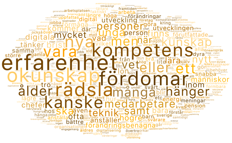 Figur 2. Svar på frågan: ”För din organisation, vilken är den viktigaste strategiska framtidsfrågan just nu?” Ordmoln där stora ord nämns mest.