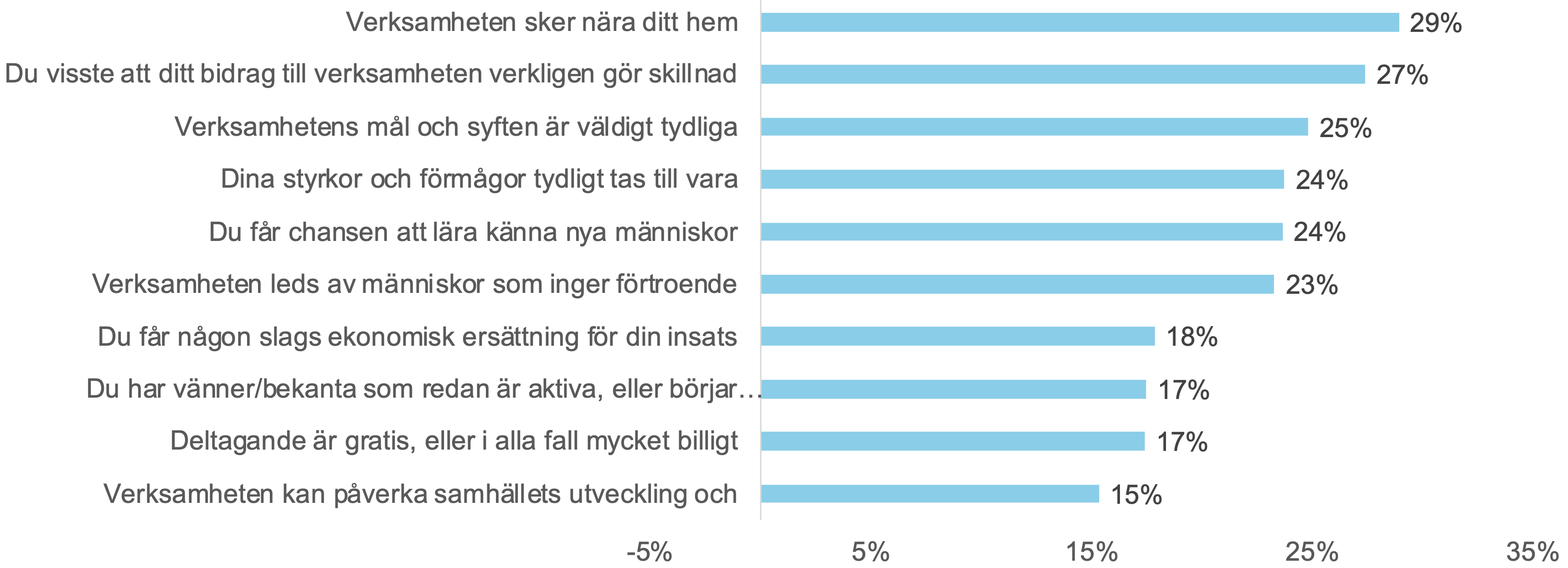 De tio mest valda villkoren som skulle öka sannolikheten för de tillfrågade att engagera sig ideellt i en organisation eller förening. Fråga: Säg att du tillfrågas om du vill engagera dig ideellt I en organisation. Vilka av följande saker skulle mest öka sannolikheten för att du svarar ja? Du kan välja upp till 5 alternativ.