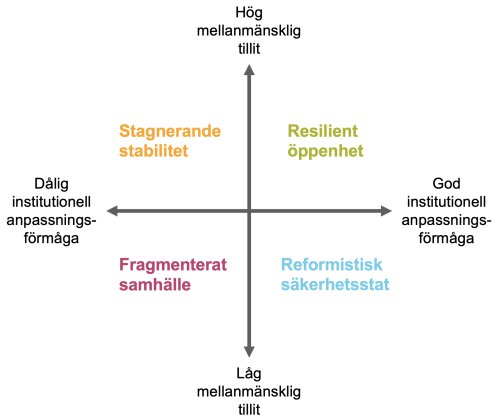 Hur utvecklingen fortsätter beror i stor utsträckning på två faktorer: tillit i samhället och institutionernas förmåga att anpassa sig till nya problem.